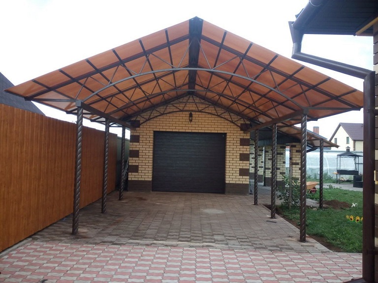 Стандартные характеристики каркаса навеса: столбы 80х80х3мм.